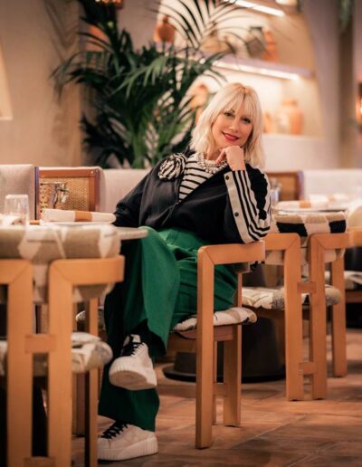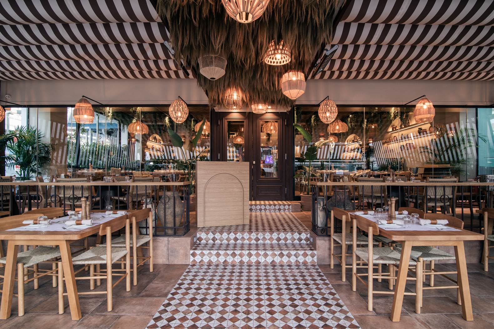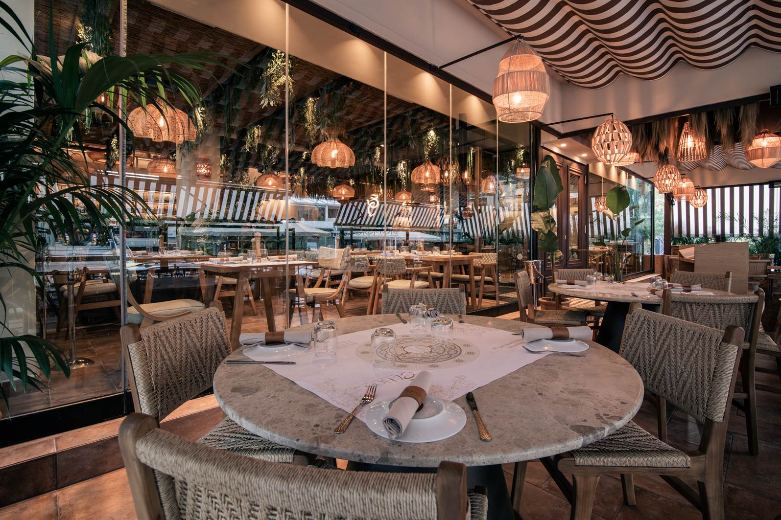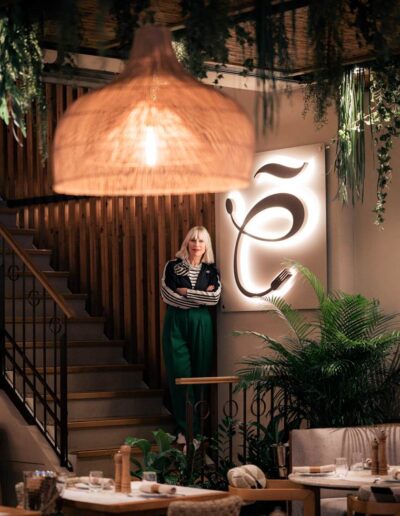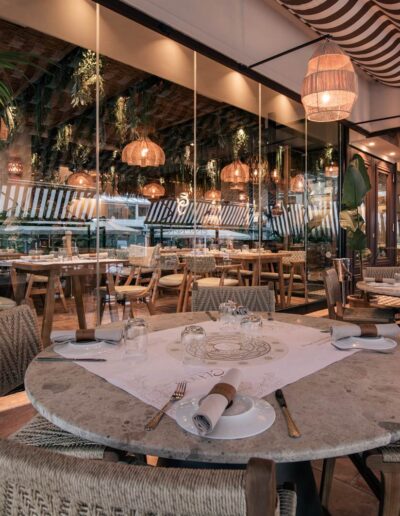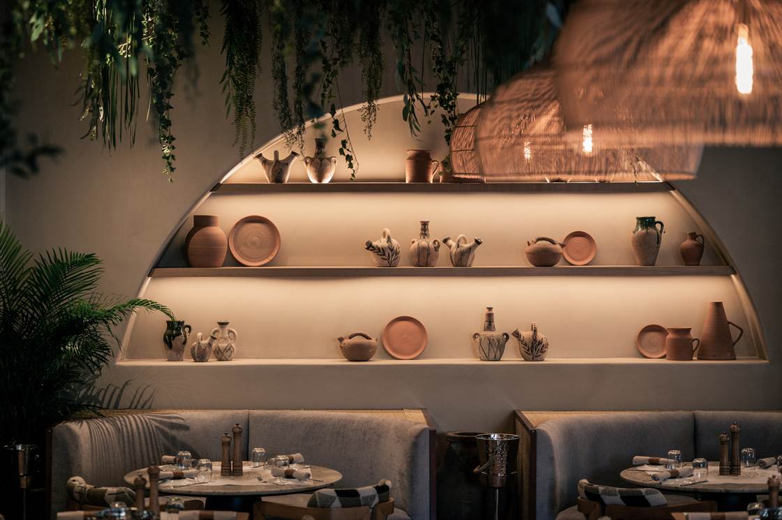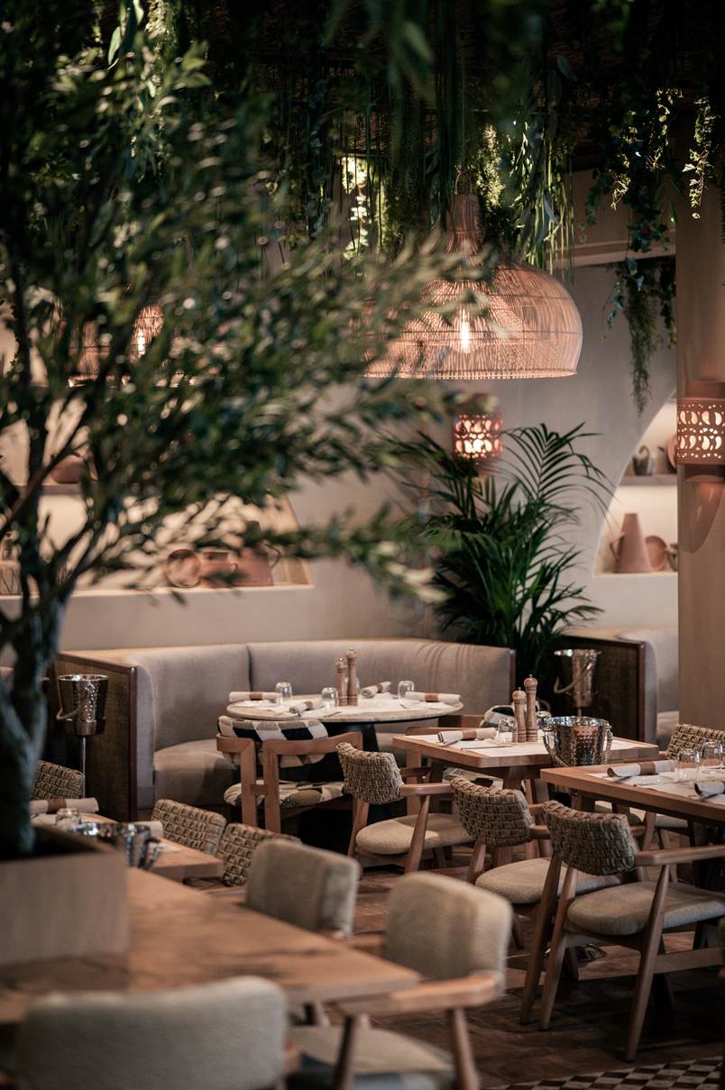 Το Ethos ξεχωρίζει για την αρμονική συνύπαρξη φυσικών υλικών, όπως το ξύλο και η ψάθα, με μοντέρνες αρχιτεκτονικές γραμμές. Τα φυτά που κρέμονται από την οροφή δημιουργούν μια αίσθηση φρεσκάδας και συνδέουν τον χώρο με τη φύση, ενώ οι πήλινες διακοσμήσεις στις ενσωματωμένες ραφιέρες προσδίδουν μια παραδοσιακή και αυθεντική νότα.